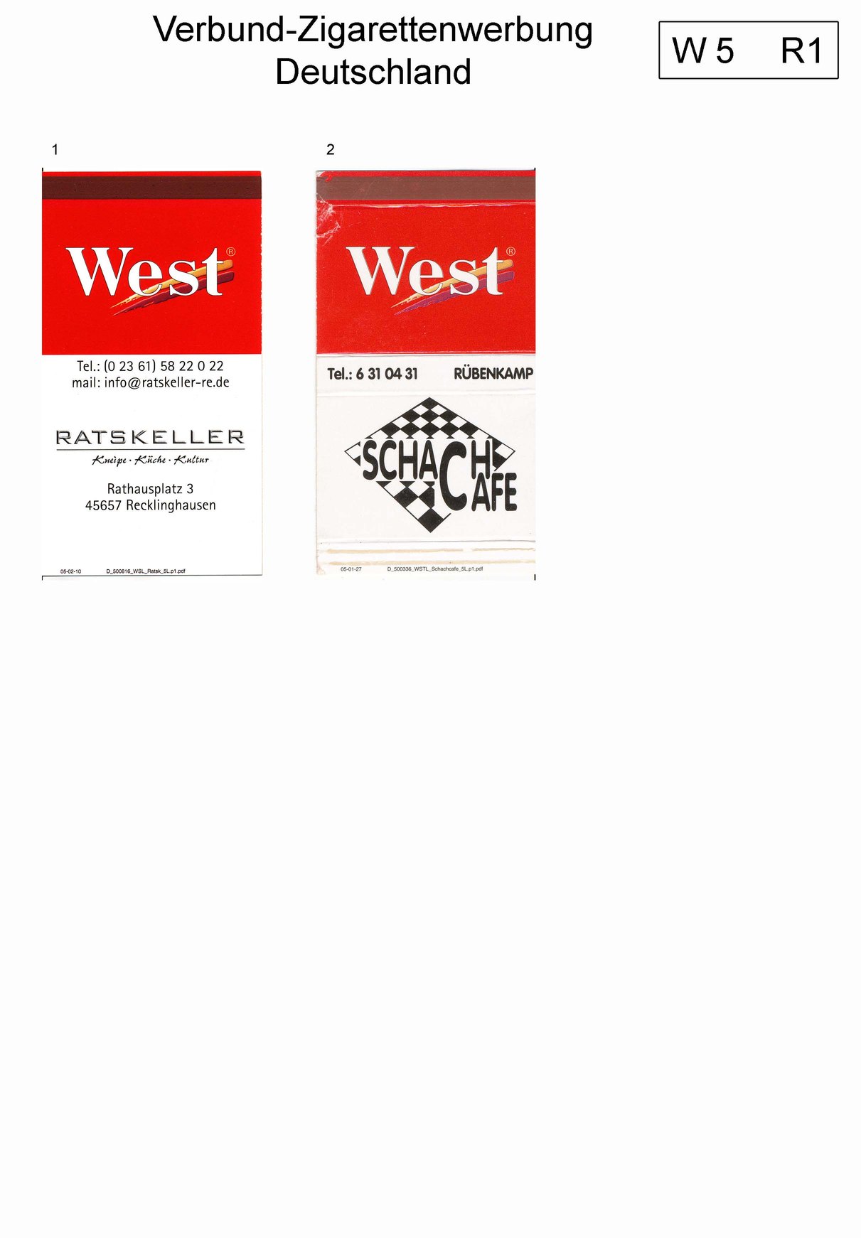 Verbund-Zigarettenserien Katalog Deutschland