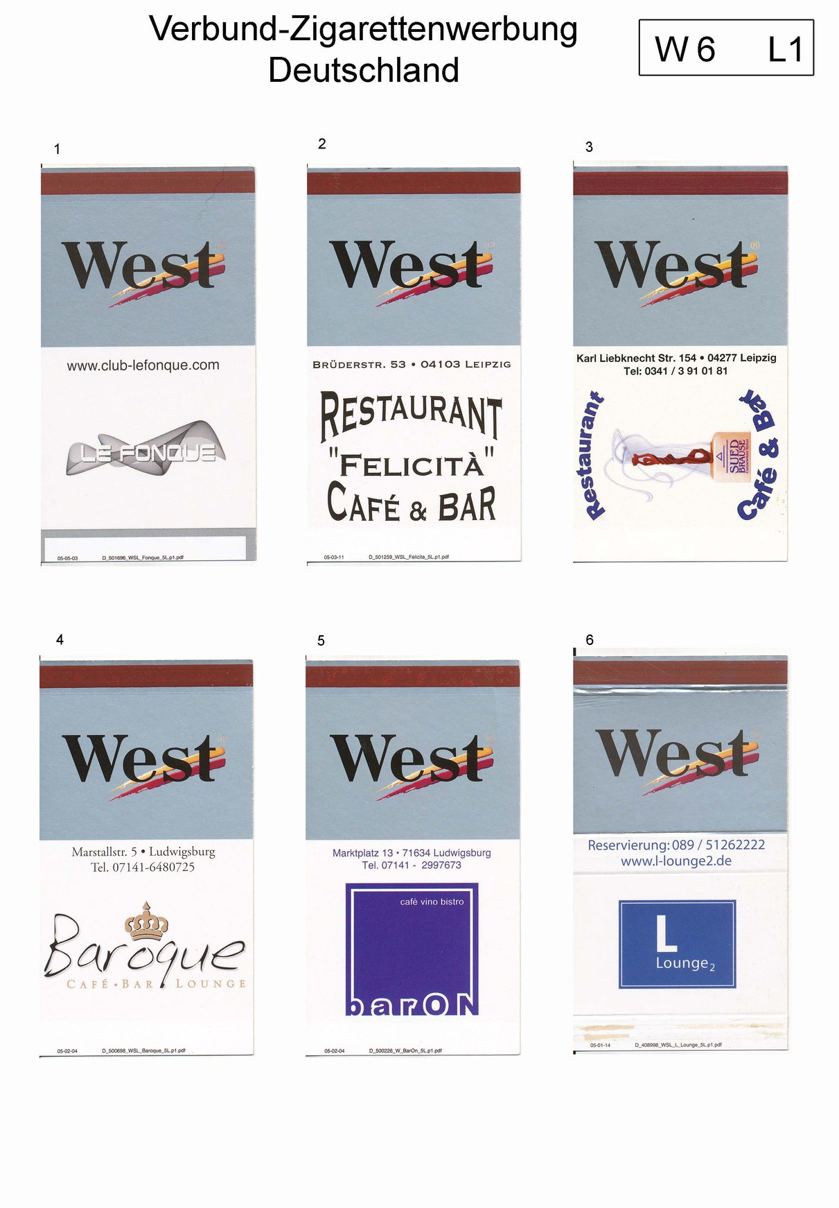 Verbund-Zigarettenserien Katalog Deutschland
