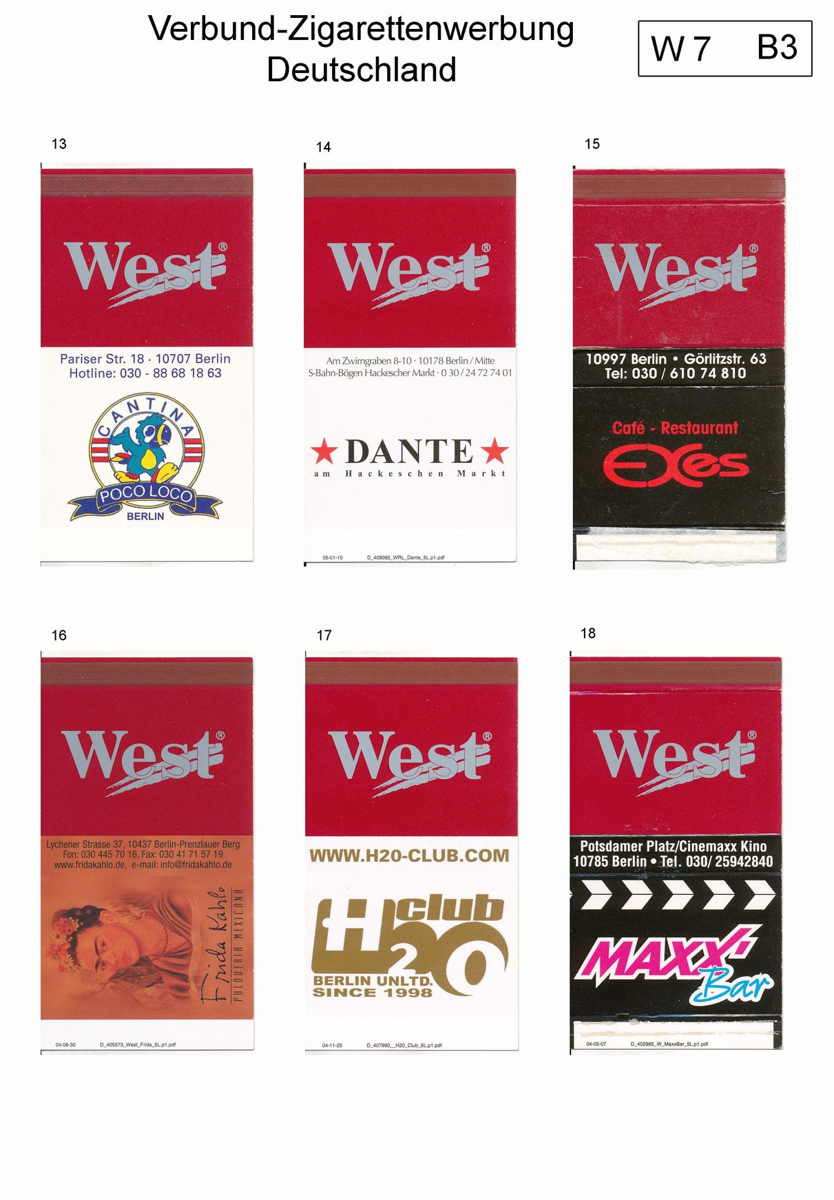 Verbund-Zigarettenserien Katalog Deutschland