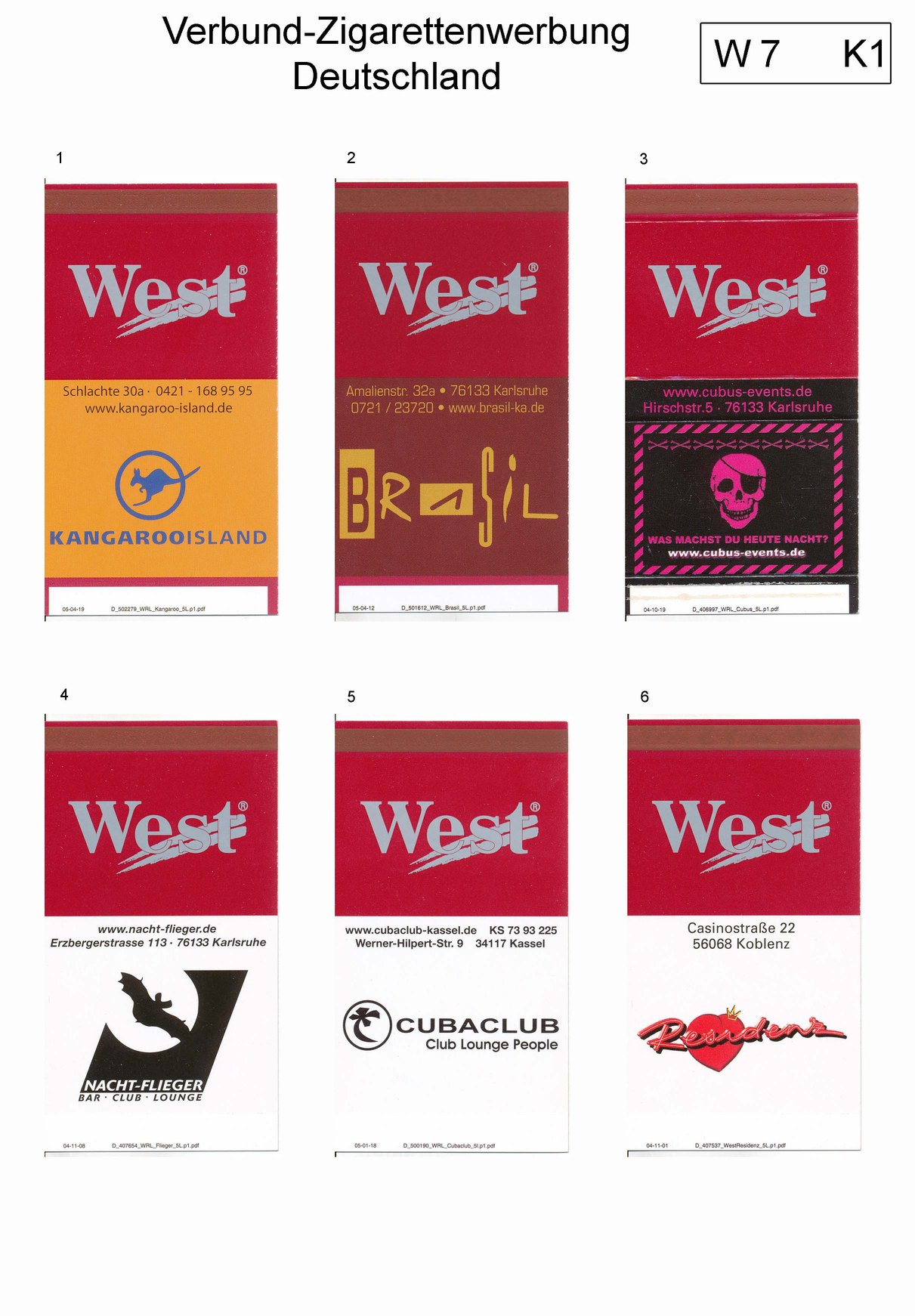 Verbund-Zigarettenserien Katalog Deutschland
